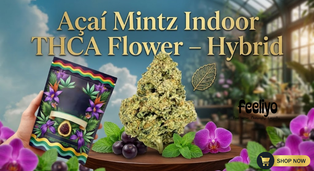 Feeliyo ships in accordance with the 2018 Farm Bill, which legalized hemp-derived products containing less than 0.3% Delta-9 THC. While federally legal, we always recommend checking your local and state regulations before you Buy Acai Mintz THCA Flower.