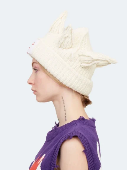 One of the most striking aspects of the hat is its playful structure. The exaggerated shapes and bold silhouettes give it a sense of movement and life, almost as if it were a character rather than an object. This is where fashion begins to blur with storytelling. The hat becomes a visual narrative, allowing the wearer to express emotions and ideas without saying a single word.
