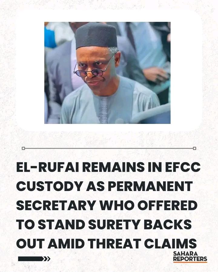 EXCLUSIVE: El-Rufai Remains In EFCC Custody As Permanent Secretary Who Offered To Stand Surety Backs Out Amid Threat Claims