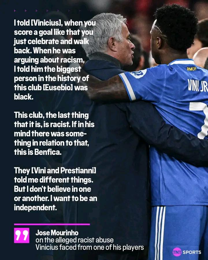 Jose Mourinho addressed the alleged racist abuse Vinicius Jr faced from one of his Benfica playersJose Mourinho addressed the alleged racist abuse Vinicius Jr faced from one of his Benfica players 🗣️0 Comments 0 Shares 38 Views 0 Reviews